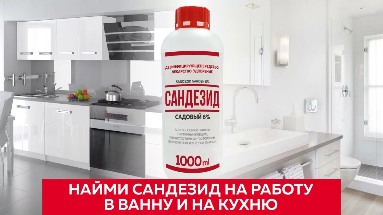 САНДЕЗИД Садовый 6% — дезинфицирующее средство, лекарство, удобрение. Борется с серой гнилью, паутинным клещом, пятнистостями, фитофторозом, ложномучнистой росой, паршой.
